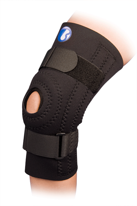 This Bunga Knee Brace with Felt Buttress™ is designed using 1/8″ neoprene with nylon on both sides. It has an adjustable felt buttress used to stabilize the knee cap (patella). The patellar opening is surrounded by a UBL donut on the inside of the support. The brace also includes medial and lateral spiral stays for stability. Further support is added to this brace by using two opposing 2-in. Velcro™ straps immediately above and below the patellar opening. This product is available in other configurations, materials and colors.